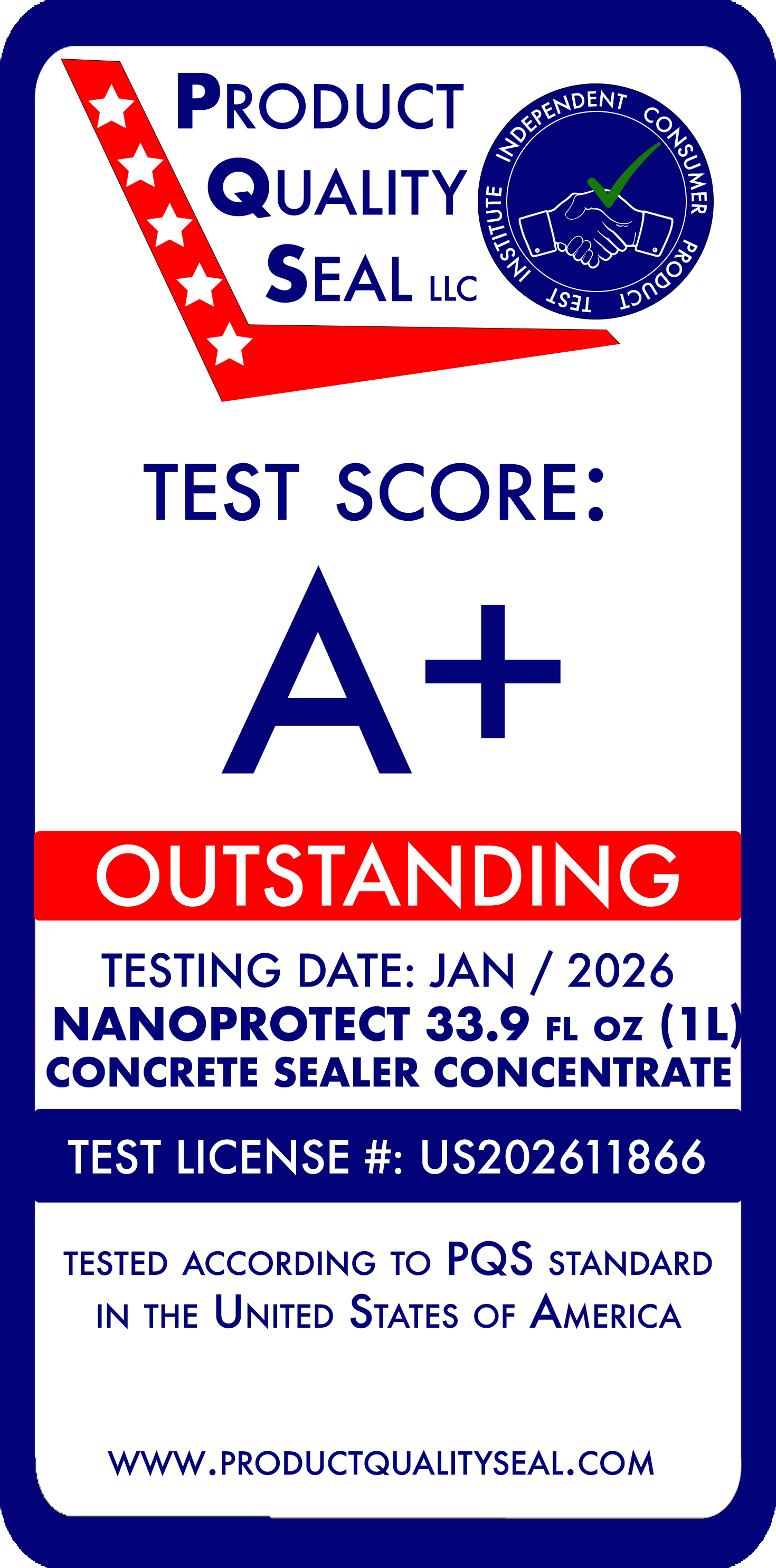 Independently tested by Product Quality Seal LLC